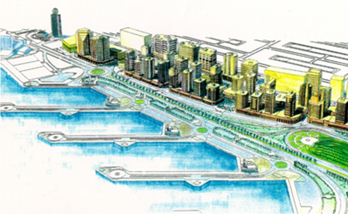 The objective of the study was to develop the site as a natural extension of the Central Business District by integrating a system of open spaces compatible with the urban fabric and creating an attractive waterfront living, work, and leisure environment.